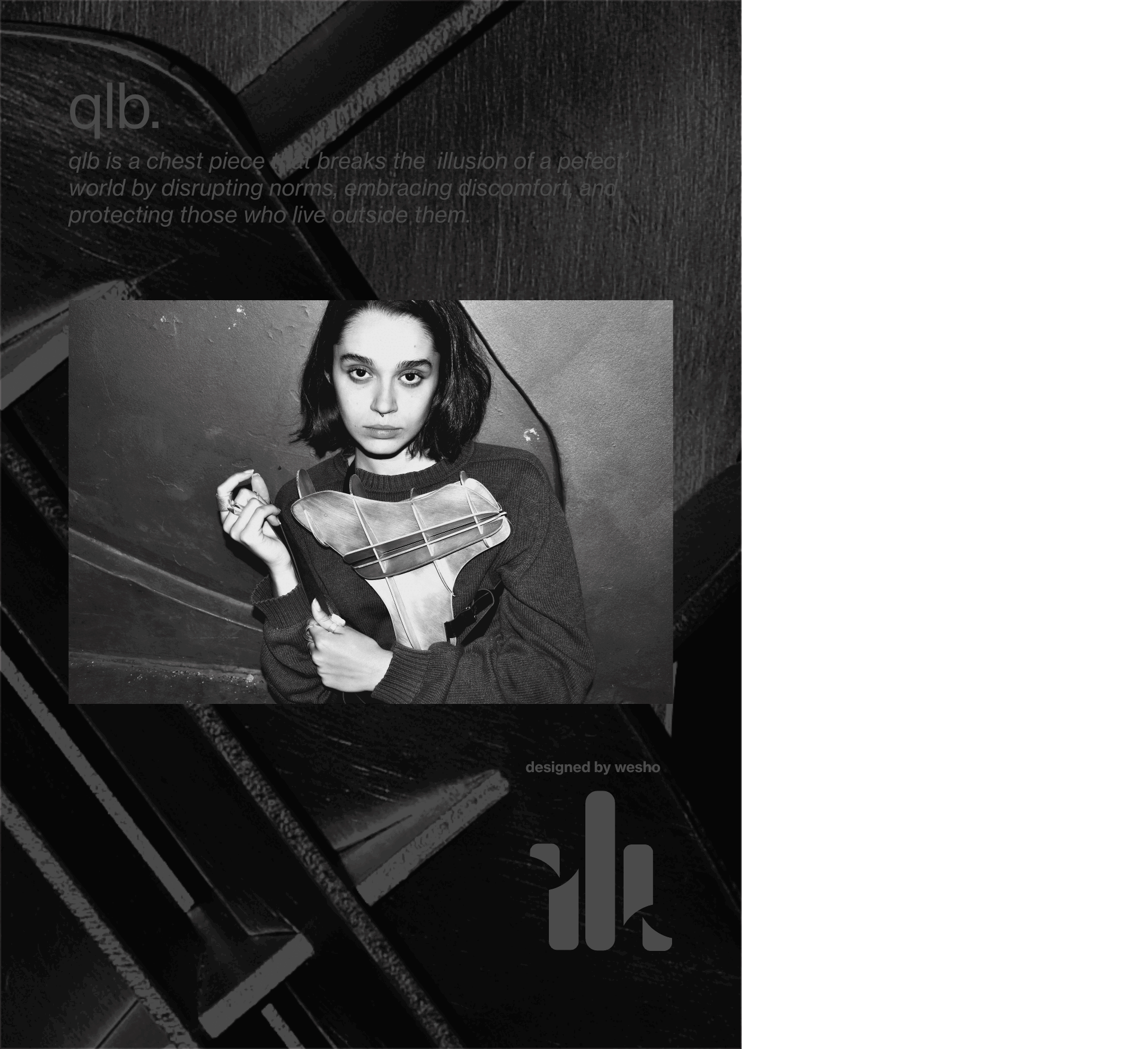 qlb is a chest piece that explores the space between discomfort and care. it acts